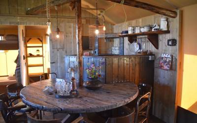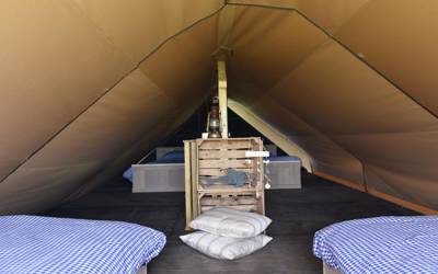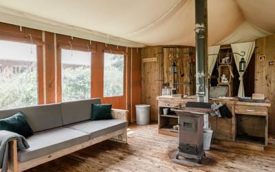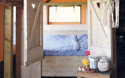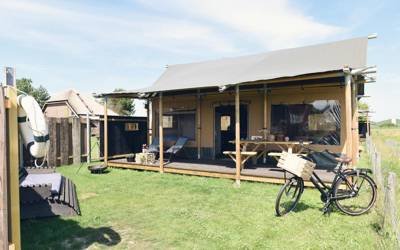 The lodges, tipi's and cabins all have their own outdoor area where you can relax in the sun. All kitchens are equipped with complete inventory, including wine glasses and a bottle of welcome-wine. If you want to do some shopping in the village, just step on your own Zon Zee Strand bike. And for the children we have two large playing fields with sandpit, soccer field and a playhouse.