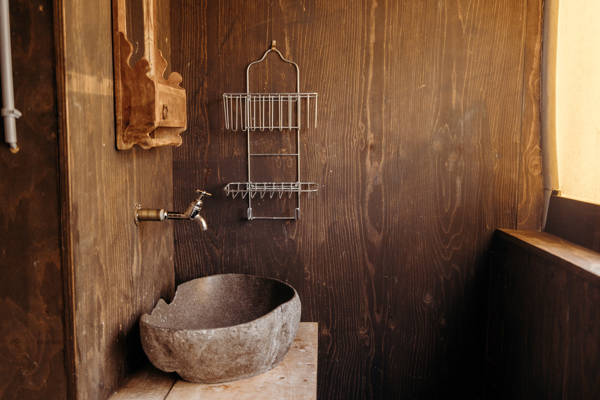All together around the picnic bench or relax on the lounge sofa with stunning views over the surrounding nature. The lodge has a private bathroom with sink and toilet. You also have the key to your own bathroom with shower in the sanitary area of the park.
