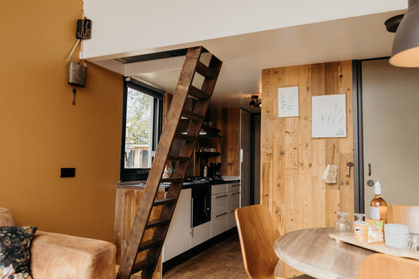 The Reddingshuisje has four sleeping places. Downstairs at the back is the master bedroom with a double bed. Upstairs there is a sleeping loft with two separate single beds. The house has its own bathroom with shower, toilet and sink.