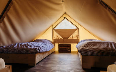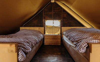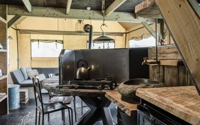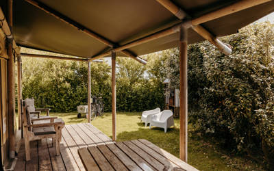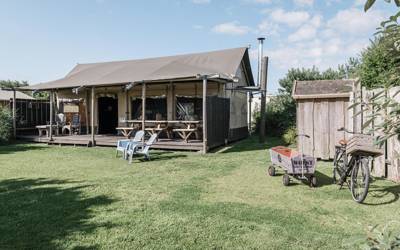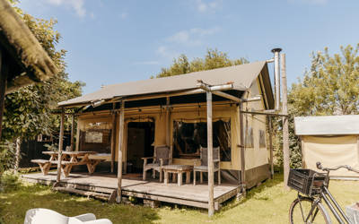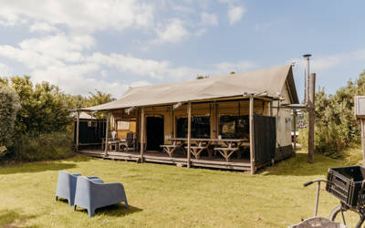 The lodges, tipi's and cabins all have their own outdoor area where you can relax in the sun. All kitchens are equipped with complete inventory, including wine glasses and a bottle of welcome-wine. If you want to do some shopping in the village, just step on your own Zon Zee Strand bike. And for the children we have two large playing fields with sandpit, soccer field and a playhouse.